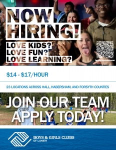 The Boys & Girls Clubs of Lanier provides a fun, safe and encouraging environment for kids and teens to explore new opportunities, focus on learning and reach their full potential to be leaders in the community. The Club does whatever it takes to inspire and enable Great Futures in Hall, Habersham and Forsyth Counties.